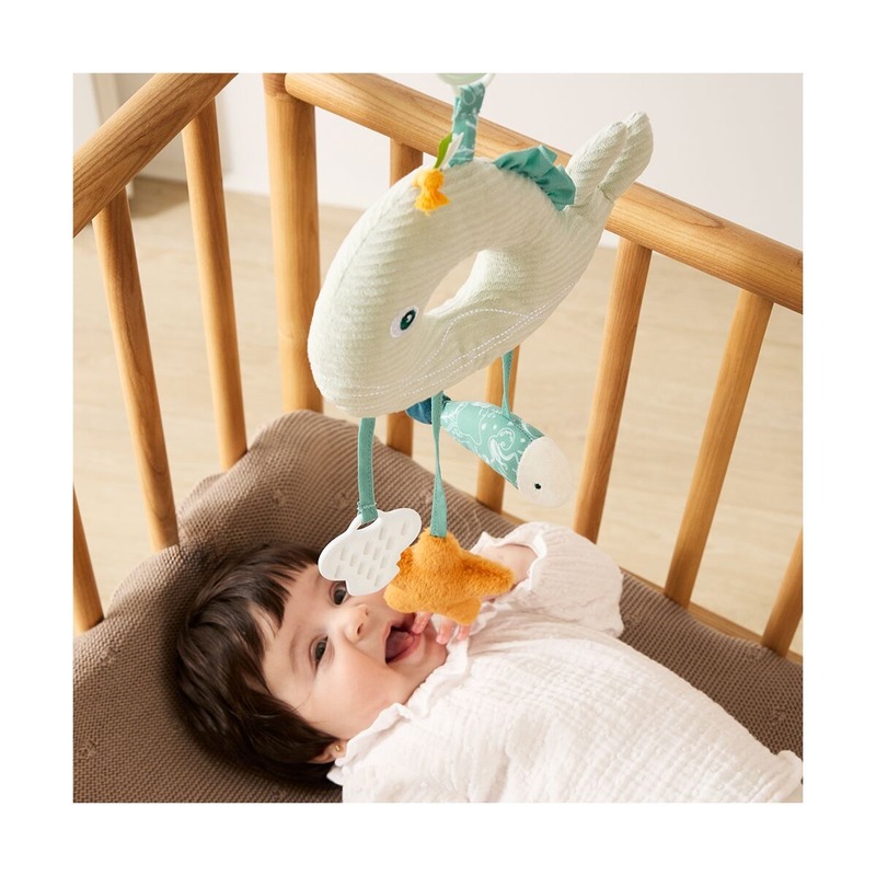 Prineste kúsok oceánskeho pokoja priamo do postieľky alebo kočíka vášho bábätka. Senzorická veľryba Baby Sea z kolekcie Adorable Moments je navrhnutá tak, aby stimulovala zmysly novorodenca prostredníctvom jemných textúr, morských motívov a upokojujúcich pohybov. Je to viac než len hračka – je to prvý kamarát na cesty aj domáce odpočínanie.
