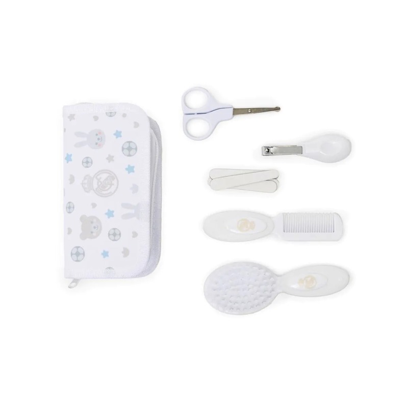 Privítajte svojho malého fanúšika vo svete "Los Blancos" s maximálnou nehou. Táto kompletná súprava na starostlivosť v limitovanej bielej edícii obsahuje všetko potrebné pre každodennú hygienu novorodenca. Od jemného česania až po bezpečnú manikúru – všetko v prémiovom puzdre s oficiálnym erbom Real Madrid.