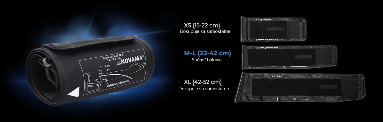 Tlakomer Novama PRO+AF BT je štandardne dodávaný s univerzálnou manžetou s rozsahom 22 – 42 cm. Tento široký rozsah zaisťuje pohodlné a presné meranie pre drvivú väčšinu používateľov bez ohľadu na obvod paže.