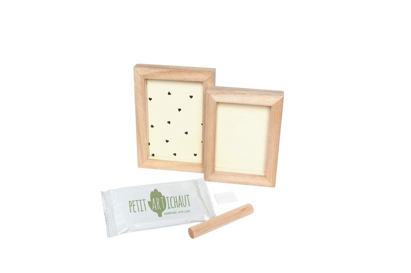 Petit Artichaut Dvojpanelový Rámik je elegantná a funkčná dekorácia, ktorá vám umožní súčasne vystaviť fotografiu a odtlačok dieťaťa. Vďaka stojanovému dizajnu a možnosti prispôsobenia pomocou obojstrannej vložky dodá šarm každému interiéru. Súprava s hypoalergénnou hlinou je ideálny, bezpečný a rýchly darček k narodeniu dieťatka, ktorý sa stane trvalou sentimentálnou spomienkou.