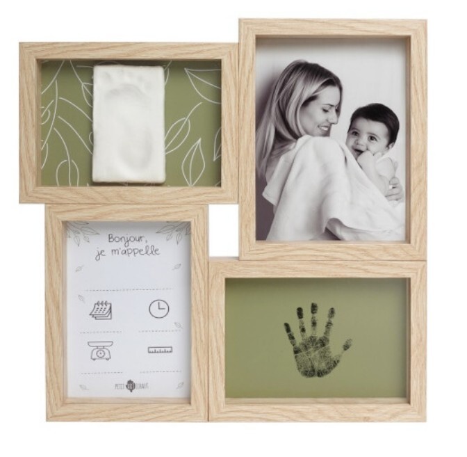 Petit Artichaut Puzzle Rám je najkomplexnejší štvorpanelový rámik, ktorý spája fotografiu, hypoalergénnu hlinu, bezkontaktné odtlačky ("Smart Inkless Touch") a pôrodný plagát do jedného celku. Tento personalizovaný drevený rám s prispôsobiteľným pozadím je jedinečný a bezpečný darček k narodeniu dieťatka, ktorý v sebe uchová všetky najvzácnejšie informácie a spomienky z prvých dní života.