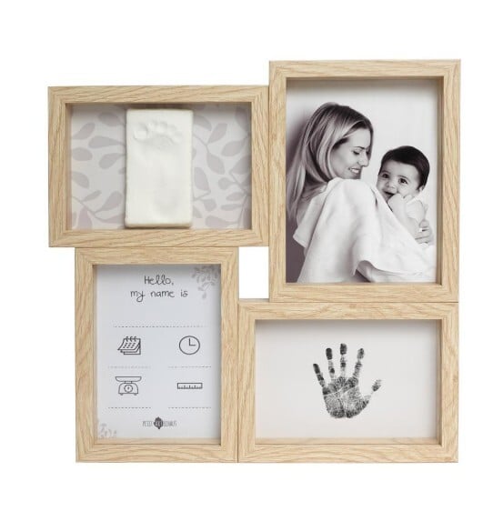 Petit Artichaut Puzzle Rám je najkomplexnejší štvorpanelový rámik, ktorý spája fotografiu, hypoalergénnu hlinu, bezkontaktné odtlačky ("Smart Inkless Touch") a pôrodný plagát do jedného celku. Tento personalizovaný drevený rám s prispôsobiteľným pozadím je jedinečný a bezpečný darček k narodeniu dieťatka, ktorý v sebe uchová všetky najvzácnejšie informácie a spomienky z prvých dní života.