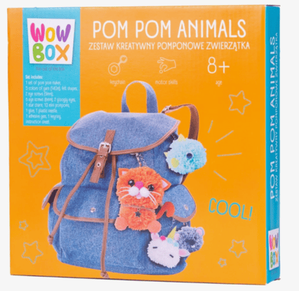 Sada WOW BOX POMPOM ANIMALS je ideálnym darčekom pre každé dieťa, ktoré rado majstruje. Odveďte pozornosť od obrazoviek k zmysluplnej aktivite, ktorej výsledkom bude vlastnoručne vyrobený kamoš na cesty!